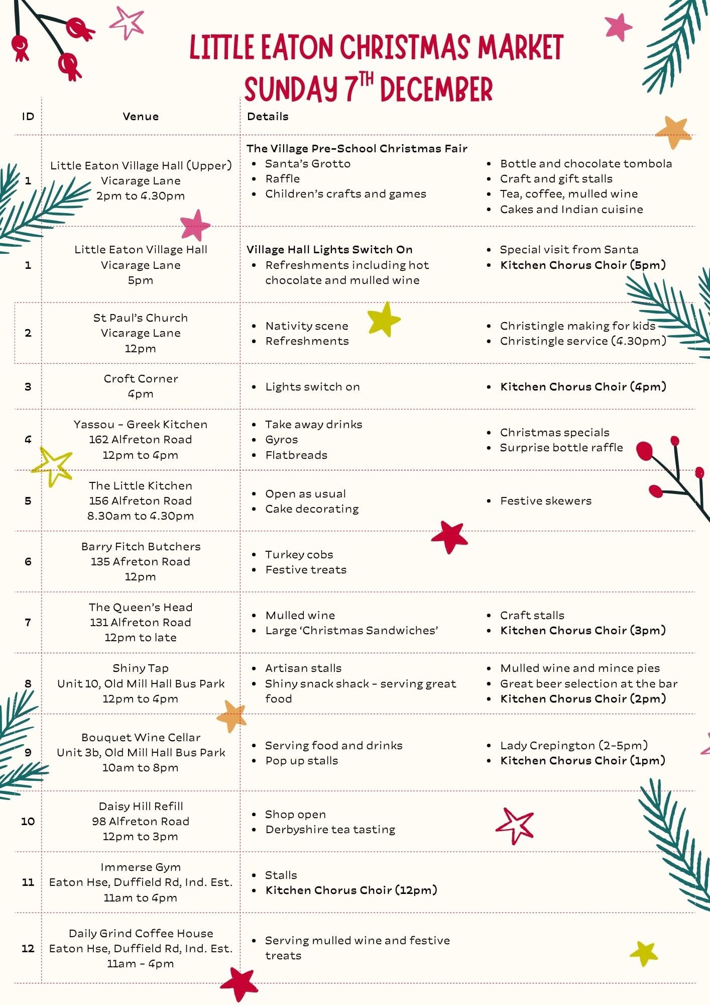 Little Eaton Parish Council are co-ordinating the Little Eaton Christmas Market following the success of last year's organised by the Queens Head.